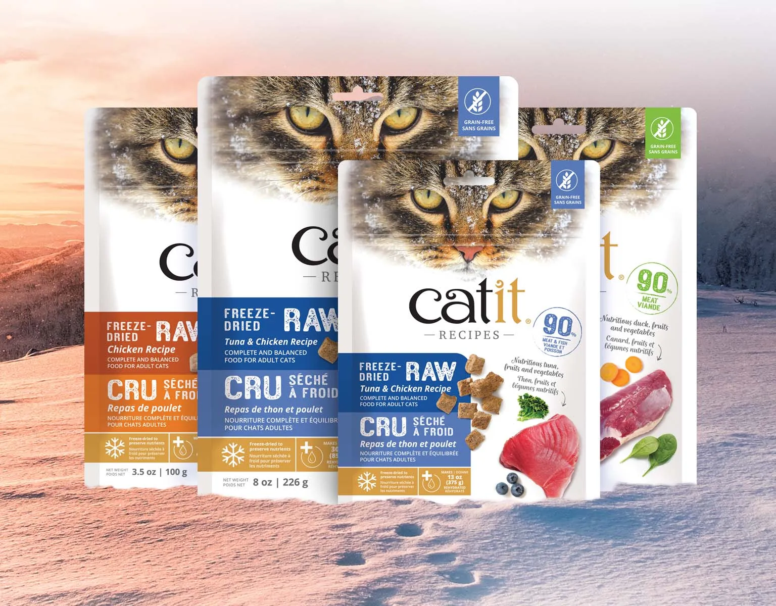 As a complete meal, Catit Freeze-dried Raw can either be served as is …